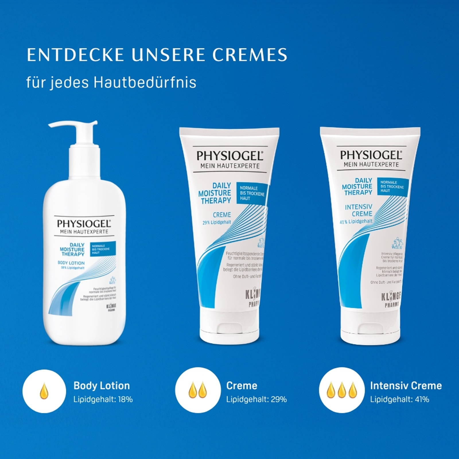 Die PHYSIOGEL® Daily Moisture Therapy Intensiv Creme verwendet zudem die innovative BioMimetic Technologie. Diese imitiert die lamellare Struktur der Haut und enthält hautverwandte Lipide. Die Haut-Lipid-Barriere wird klinisch erwiesen regeneriert und gestärkt, sodass wichtige Feuchtigkeit in der Haut verbleibt – und das Eindringen schädlicher Reizstoffe erschwert wird. Auf diese Weise wird Ihre Haut optimal gepflegt und geschützt.