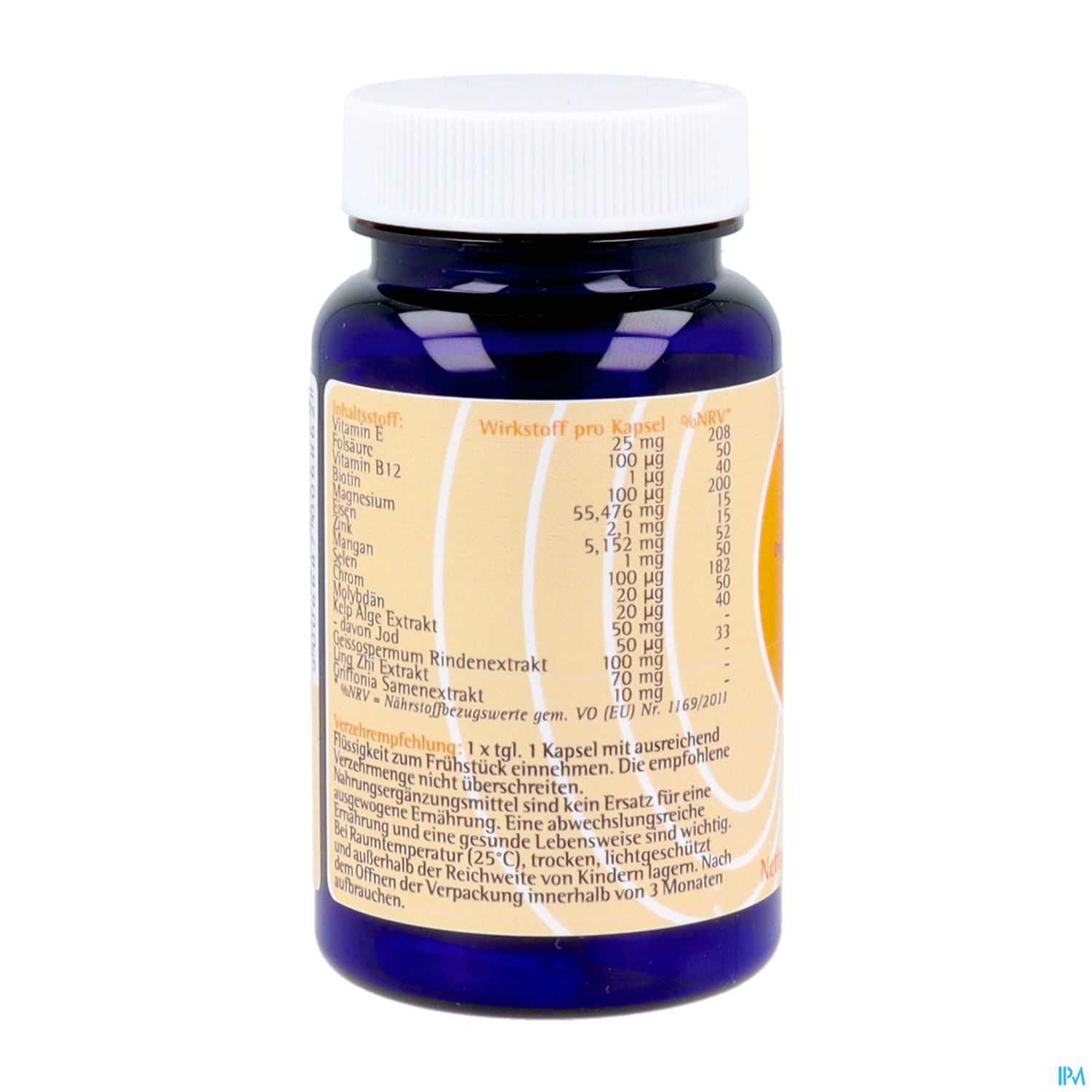 | Inhaltsstoff: | Wirkstoff in mg/Kapsel | % RDA* |