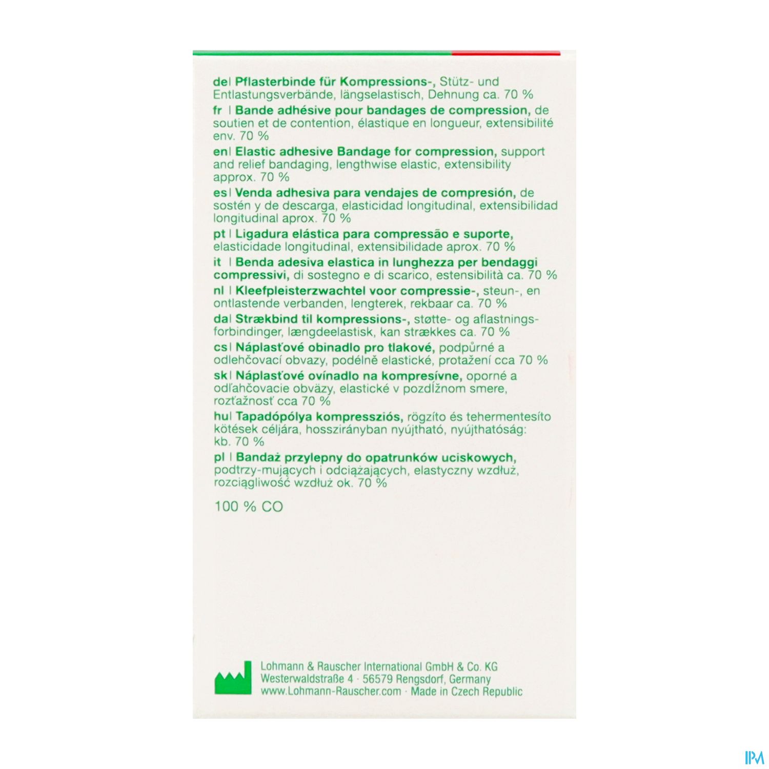 Trägergewebe: 100 % hydrophobiertes Baumwollgewebe, zinkoxidhaltiger Synthesekautschukkleber